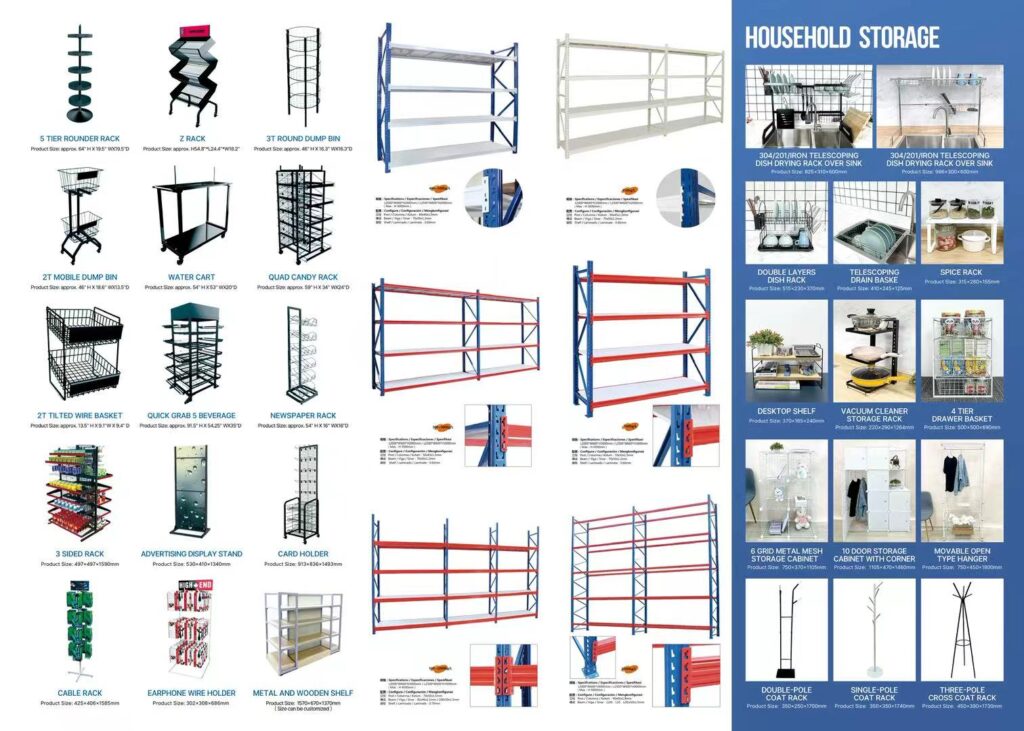 Retail Display Racks & Shelving 金屬製商店陳列設施&展示架/Household & Home Storage 金屬製家庭用品&家居收納架/Custom Product Design & Manufacturing 金屬製客戶定制產品設計&製造/Metal Parts OEM 金屬零部件代加工